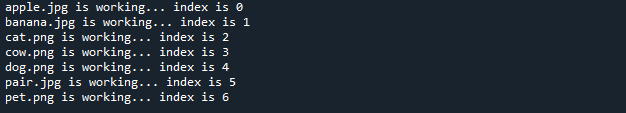 for loop 안에서 각각의 index마다 어떤 파일명이 실행되고 있는지 출력해주는 코드다.