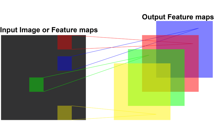 그리고 각 합성곱 연산마다 이미지의 모든 픽셀을 사용하는 것이 아니라, 커널과 맵핑되는 픽셀만을 입력으로 사용하는 것을 볼 수 있다.
