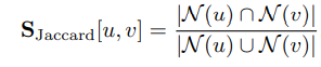 위의 인용은 책의 18p에 나와있는 local overlap statistic에 대한 정의를 갖고온 것이다. 그리고 다음 목록은 local overlap statistic을 계산하는 다양한 계수에 대한 목록이다. local overlap statistic은 결국 두 노드가 얼마나 비슷하냐? 유사한가?를 계산하는 일이기에 다음 계수들은 유사도를 측정하는 계수들이다.