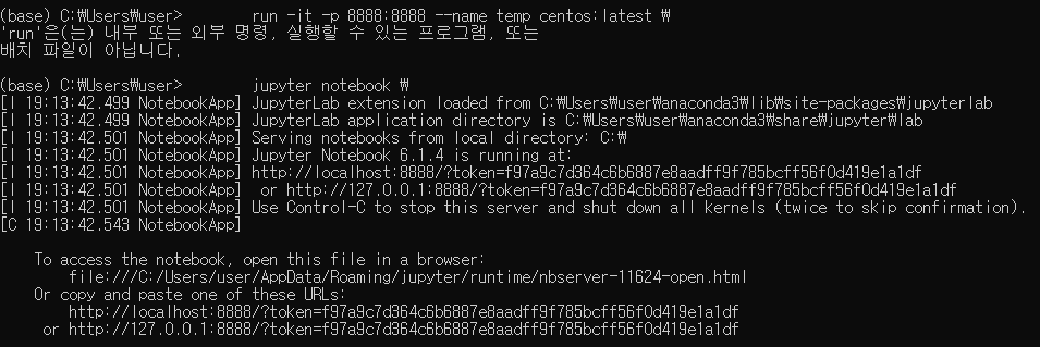 - --allow-root: 도커 컨테이너의 기본 계정은 root이기 때문에 컨테이너를 생성하면서 jupyter를 열려면 이 옵션을 꼭 붙여줘야한다.