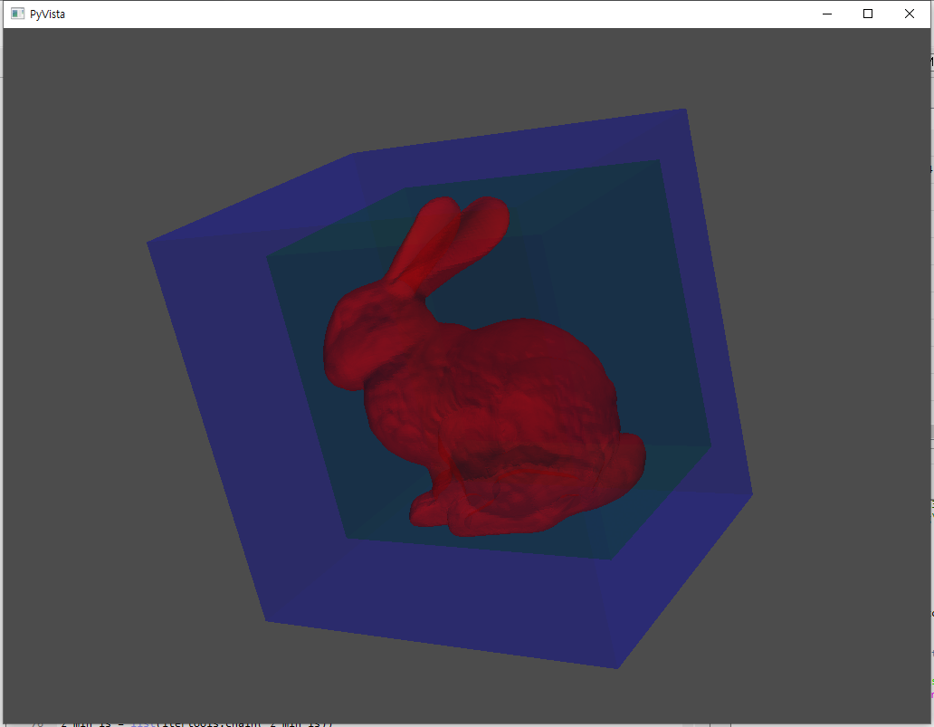 작은 바운딩 박스를 만들때 (pv.Box 오브젝트) 총 여섯개의 좌표값을 순서대로 넣어줘야한다. (xmin, xmax, ymin, ymax, zmin, zmax)