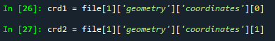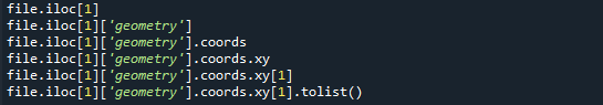 이 dict에서 내가 필요한 key만 불러오고 싶다고 하자. 나는 'geometry'라는 key 값만 불러올 것이다.