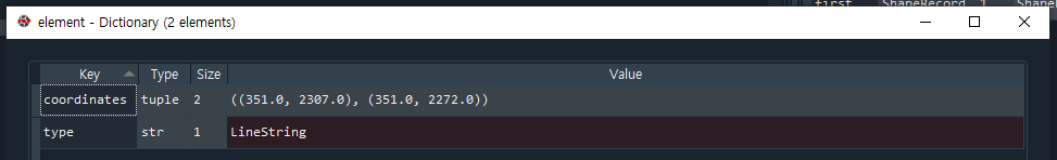 element = first.shape.__geo_interface__ #객체를 dict 타입으로 불러오기