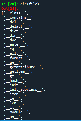 dir(file (shape파일을 불러온 객체))을 하면 file에 쓸 수 있는 함수, 혹은 받을 수 있는 속성값에 무엇이 있는 지 알려준다. 총 74개가 있다고 한다.