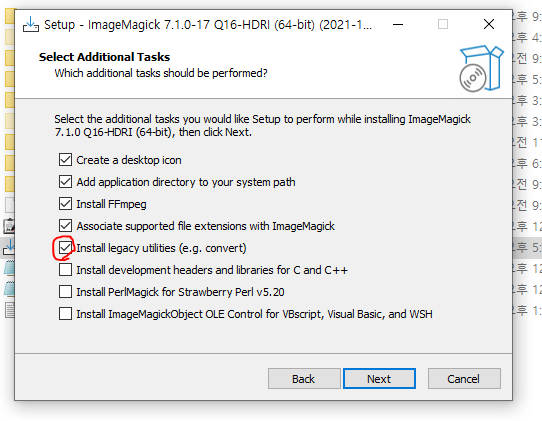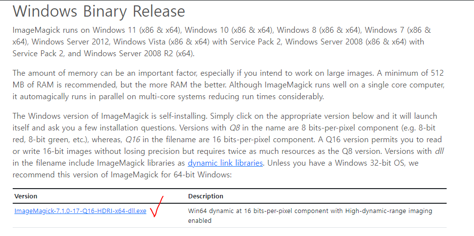 imagemagick 이라는 이미지 파일 편집기 프로그램을 다운로드하고, exe 파일을 실행시켜 install을 진행한다.